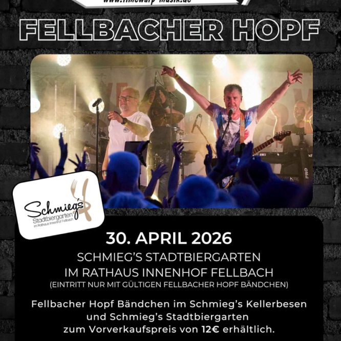 Auch dieses Jahr freuen wir uns, am Freitag 10.10.25 ab 19.30 Uhr wieder im Rathaus-Innenhof Fellbach bei der Weingärtner Genossenschaft